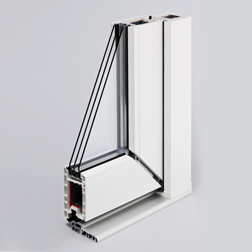 Five air chambers perform the function of an insulating barrier between the low temperature outside and the high temperature inside the room (or vice versa in summer). This profile structure provides extremely high coefficient of heat transfer resistance.